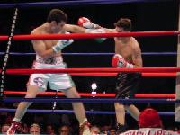 as he brushed away the Indiana man’s offensive efforts while landing stinging shots, being particularly effective with a heavy left hook to the body. Galvan almost didn’t make it out of the initial frame but his experience saw him through, grabbing hold of the much taller and seemingly larger Chavez Jr. The young son of the Mexican legend showed a bit of the father’s mean streak, at one point throwing a retreating Galvan through the ropes and nearly out of the ring itself.
