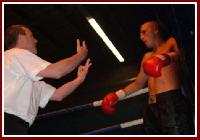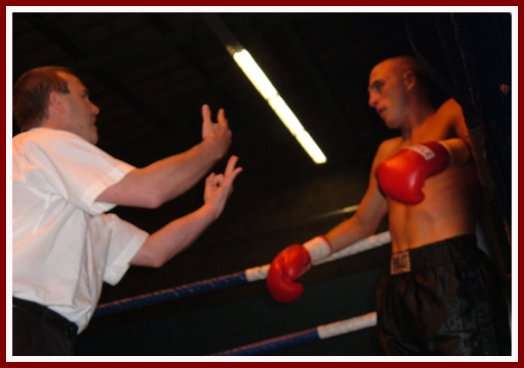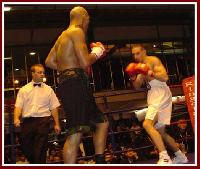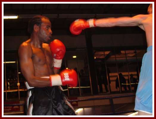 After the bell rang to begin the first, Toombs immediately displays power and a come forward style as he hammers away at Bamballra’s body but wastes most of his punches on the elbows of his opponent. Toombs then lands a belting uppercut that has Bamballra down for an eight count and looking shaky. Bamballra simply can’t cope with the power of Toombs. Toombs starts the second frame knowing he can hurt Bamballra and throws huge, wild shots that all miss the mark. It seems that if Toombs boxed a little more cutely he’d have much more success. Finally, he lands a thumping left hook to the body and Bamballra kisses the canvas again.