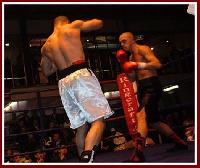The first bout of the evening was between two super featherweights; Hackney’s Mark Alexander and the less experienced Graham Higginson of Blackburn, who provided a very entertaining opening to the show. The initial session was marked by Alexander landing a decent right cross, which slowed the pace down until Higginson found the mark with a good uppercut. A pretty even first round. The action picked up a bit in the second as Alexander hammers home two excellent left hooks to the head of Higginson, who replies with a spearing right hand to the body. Higginson wisely spends much of the round on the defensive.