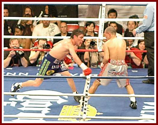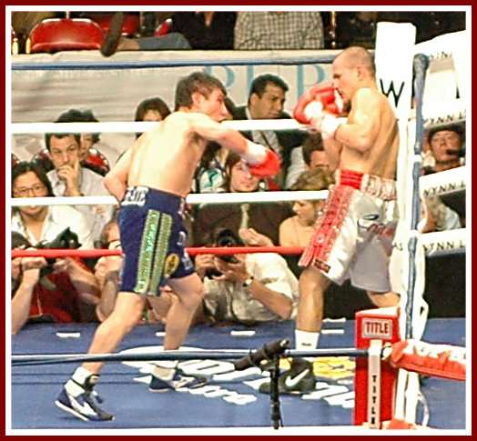 With Judah entering the bout as IBF Welterweight Champion, despite losing his last fight, Las Vegan Mayweather entered the ring first to loud cheers from his growing fan base. It was a tentative opening round with neither fighter wanting to lead, respectful of each other?s skill and power. Judah was sharp early as he often is, and with Mayweather a little tight while figuring out his fast southpaw opponent, the New Yorker was able to take the first two rounds on two of the three judge?s scorecards. Knowledgeable fight fans at this point were a little intrigued, so unaccustomed to seeing master boxer Mayweathe! r perhaps lose consecutive rounds.