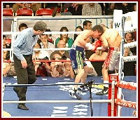 Mayweather?s trainer and Uncle, Roger Mayweather, understandably couldn?t control his emotions after witnessing the cheap, illegal activity against his nephew and entered the ring walking towards Judah to verbally confront him. Zab Judah?s trainer and father Yoel Judah quickly entered the ring and threw a punch at Roger Mayweather. A melee ensued and the ring filled up with security guards and corner men from both the Judah and Mayweather camps. The security personnel working the fight should be commended for not letting a potentially dangerous situation get out of hand, as both fighters had their groups of fans ringside.