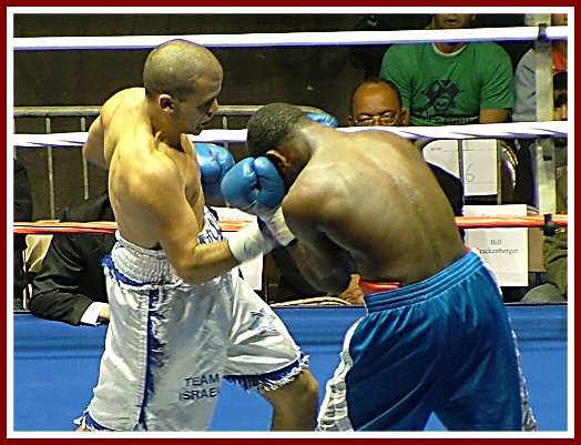 Israeli junior welter Elad Shmouel was making his debut on American soil and wasted no time disposing of his opponent, Rasheed Daniels, who made the trip from Warren, Ohio. Not sure if it was Shmouel’s punching power or a lack of conditioning from Daniels which resulted in an early knockout for “The Kosher Pit Bull”.