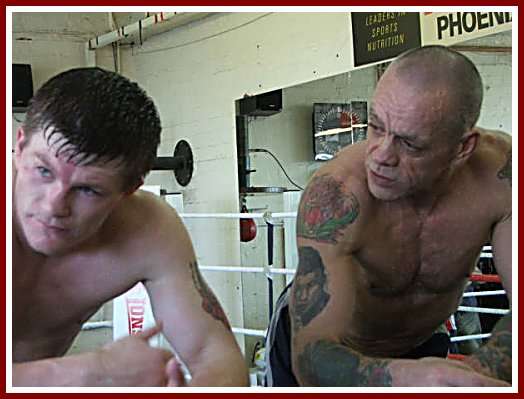 Ricky Hatton’s fearless trainer Billy Graham donned the huge bodybelt which symbolizes the final hard workout of every Hatton training camp and the two men went 15 grueling rounds yesterday at Graham’s Phoenix Camp gym in Manchester. “The Hitman” was absolutely relentless in pounding the bodybelt, working nonstop, his punches consistently powerful and at times making the taller, heavier Graham topple back.