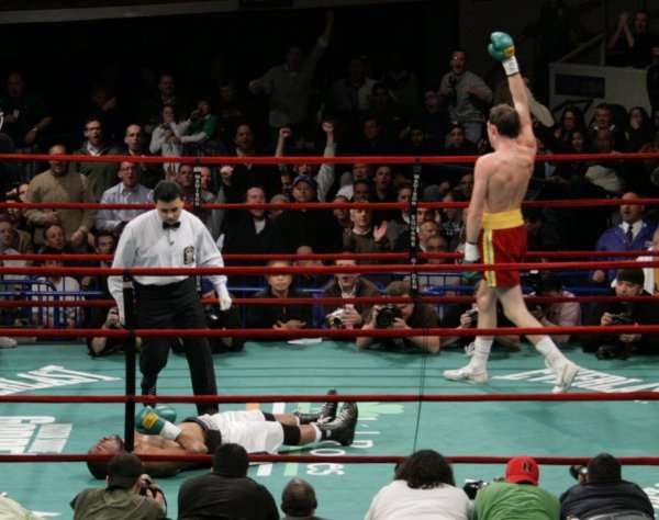 The broadcast would open with a scheduled six round, super middleweight bout featuring rising prospect “Irish” Andy Lee. Lee, now 8-0 (5) only needed three rounds to stop veteran Carl Daniels 49-11-1 (31). Lee was dominant throughout the fight and came on strong in the third round, landing a solid right hook which sent Daniels to the canvas. Daniels remained flattened on the canvas well beyond a 10 count, awarding Lee with a KO victory at 2.36 of the round.