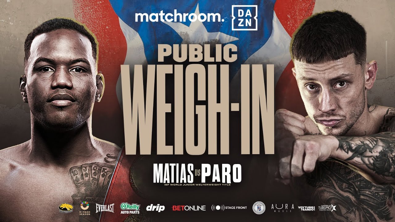 It’s time to hit the scales in Puerto Rico as Subriel Matias defends his IBF World Super Lightweight Title against Liam Paro. Watch as both Champion and Challenger weigh in alongside various undercard fighters including Angel Fierro, Yankiel Rivera, Stephanie Pineiro and William Ortiz.