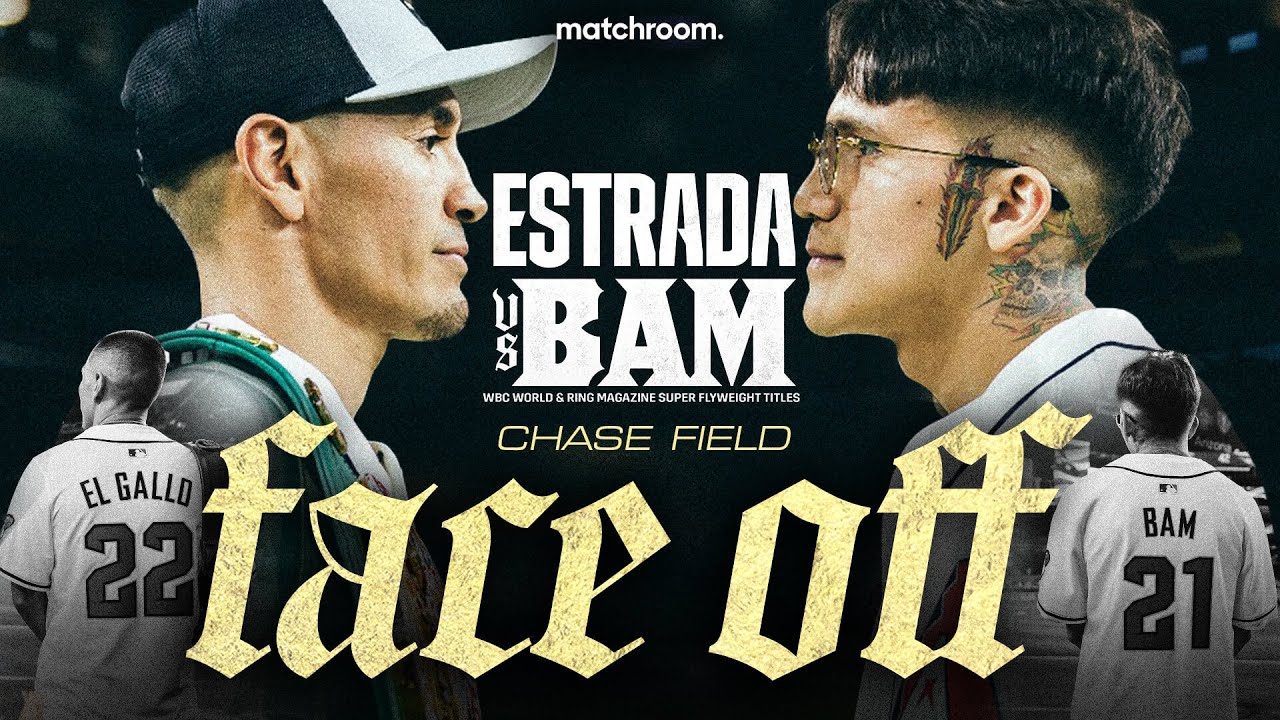 Juan Francisco Estrada and Jesse Rodriguez face-off and throw the ceremonial first pitch at the Chase Field ahead of the Arizona Diamondbacks home game with the Minnesota Twins. The two fighters come face-to-face for the first time in fight week ahead of Saturday’s showdown at the Footprint Center, live on DAZN.