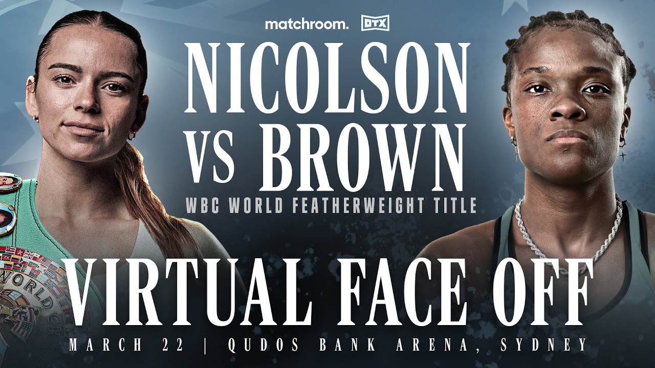 The first ever meeting between WBC World Featherweight Champion Skye Nicolson and mandatory challenger Tiara Brown takes place virtually, as Matchroom Boxing’s Jamie Ward mediates a Face Off ahead of their highly anticipated encounter in Sydney, live on DAZN. Tickets for their March 22 showdown are still available via Ticketek Australia. Enjoy!