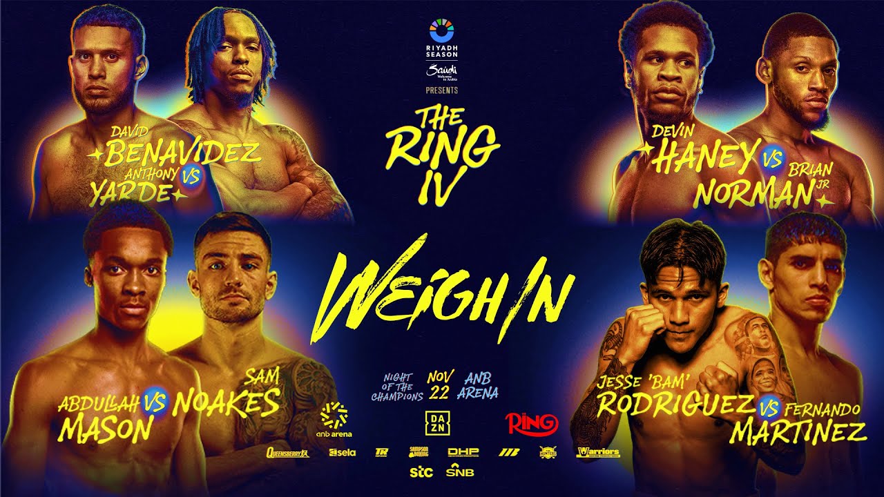 It’s time to hit the scales in Riyadh as our four championship fights all weigh in. It’s a stacked card this Saturday live on DAZN featuring: Bam Rodriguez vs Puma Martinez, David Benavidez vs Anthony Yarde, Brian Norman vs Devin Haney and Abdullah Mason vs Sam Noakes.