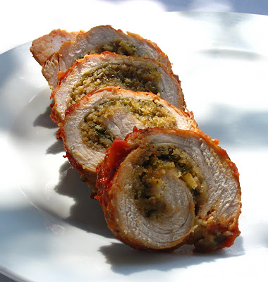 Pesto-stuffed pork bracciole from the New Jersey Italian Kitchen with some